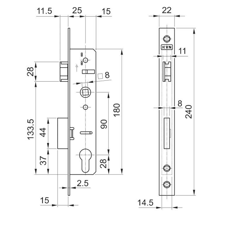 Zámok vložkový, zápust 40mm, rozteč 90mm, poniklovaná predná lišta