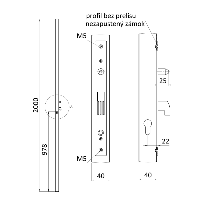 Profil 40x40x1,5mm H-2000mm so zámkom bez zapustenia