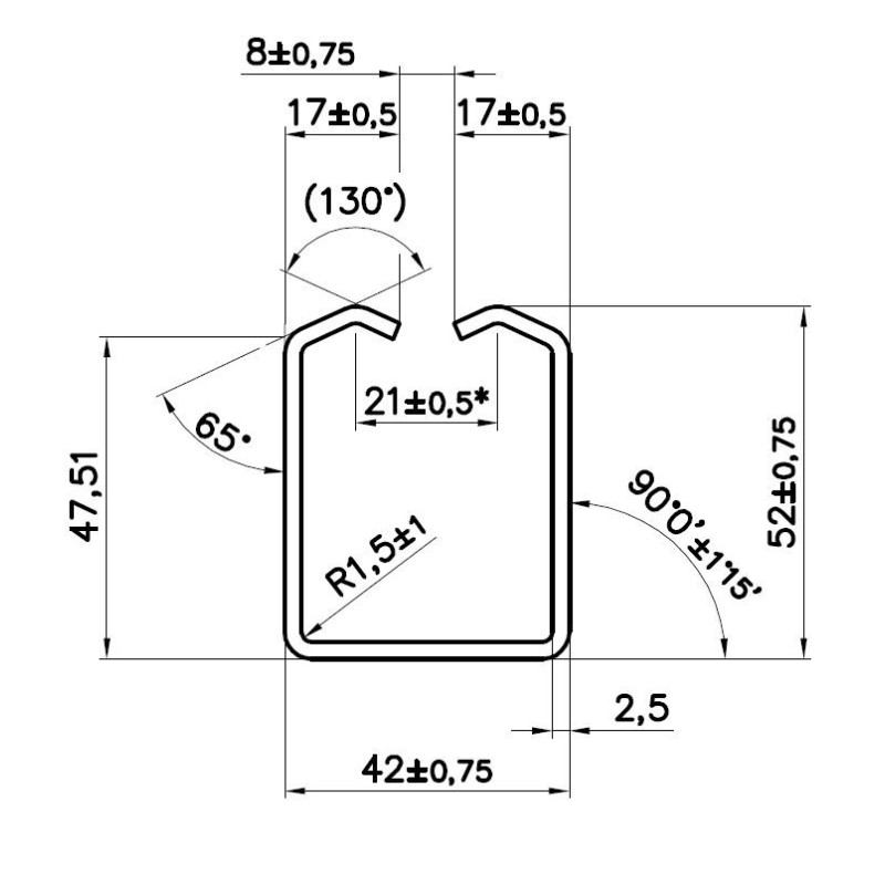 Profil MEDIO 42x52x2.5mm, dĺžka 6m