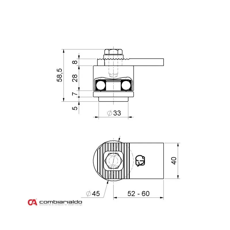 Ložiskový záves od popredného talianského výrobcu Combi Arialdo. Povrchová úprava- pozink. Zaťaženosť krídla zvýši kombinácia so spodným závesom C348/20, C349/20 a C346. Počet kusov v balení - 4.