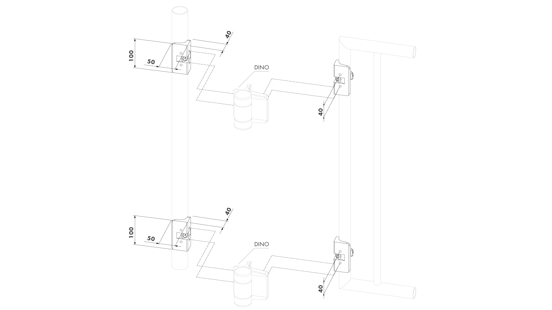 Hliníkový držiak na inštaláciu závesu LOCINOX® DINO na kruhový profil. Adaptér sa umiestňuje medzi záves a stĺpik. Adaptér umožňuje montáž závesu LOCINOX® DINO na stĺpik ø 48 až ø 102 mm resp. na bránu ø 35 až ø 48 mm.