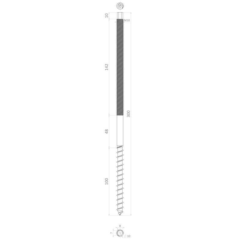 Nerezový závitový vrut (10x300) samorezný / metrický závit, DIN9082/A2 /AISI304