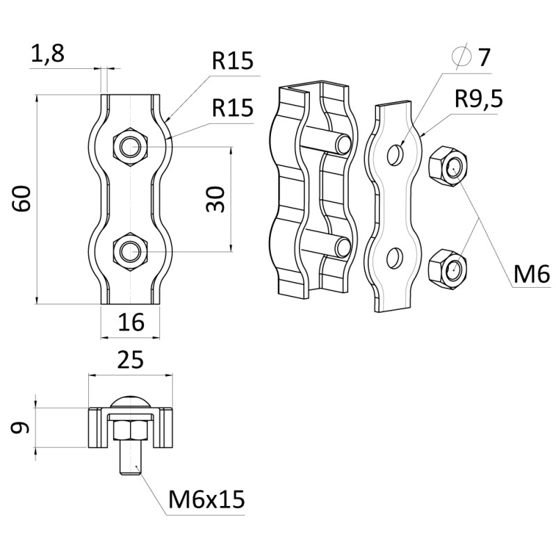 Lanková svorka - dvojitá (duplex) pre nerezové lanko 6mm, brúsená nerez K320/ AISI304