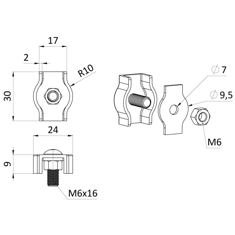 Lanková svorka - simplex pre nerezové lanko 6mm, brúsená nerez K320/ AISI304