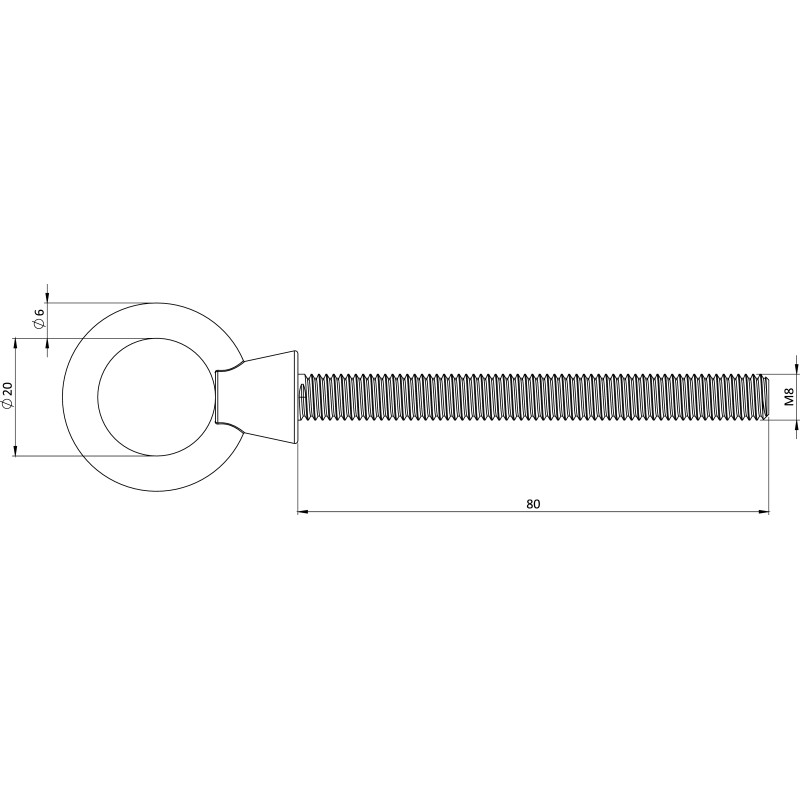 Skrutka s okom a metrickým závitom, M8x80, Art.8267 A4/AISI316