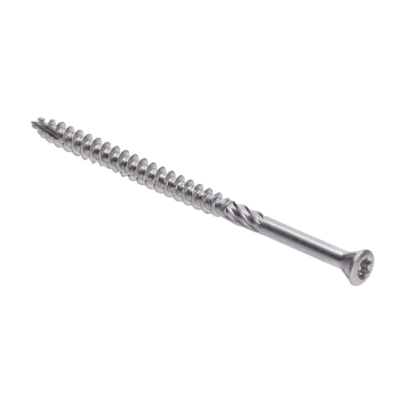 Naše terasové skrutky sú ideálne na upevnenie vonkajších lavíc z tvrdého dreva bez stresu a trvanlivým spôsobom, fasád z tvrdého dreva, vonkajších a vnútorných drevených schodov. Materiál skrutky je odolný voči vplyvom prostredia, nekoroduje a nezanecháva škvrny na dreve. So samorezným hrotom je vŕtanie podstatne jednoduchšie a rýchlejšie ako v prípade produktov s tradičným hrotom a závitom. Rebrá pod hlavou skrutky sú určené na ľahké zapustenie či už ide o tvrdé alebo mäkké drevo. Niekde ich viete nájsť aj pod názvom nerezová drevená skrutka