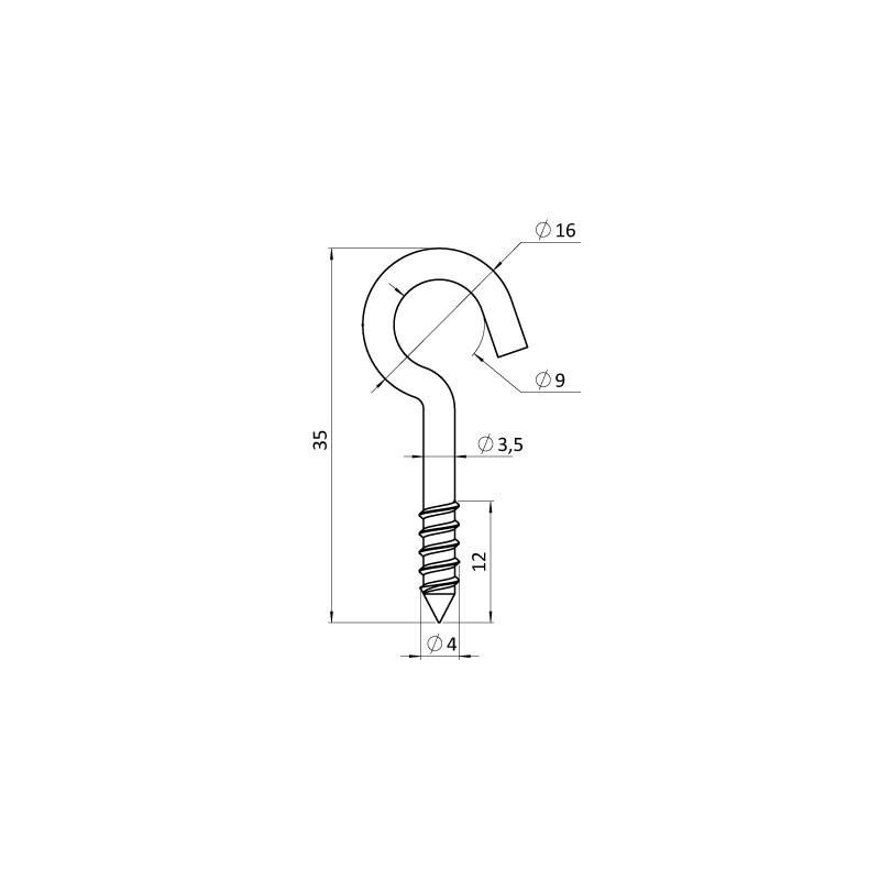 Nerezová skrutka s hákom, závit do dreva, AISI304, 3.5x35