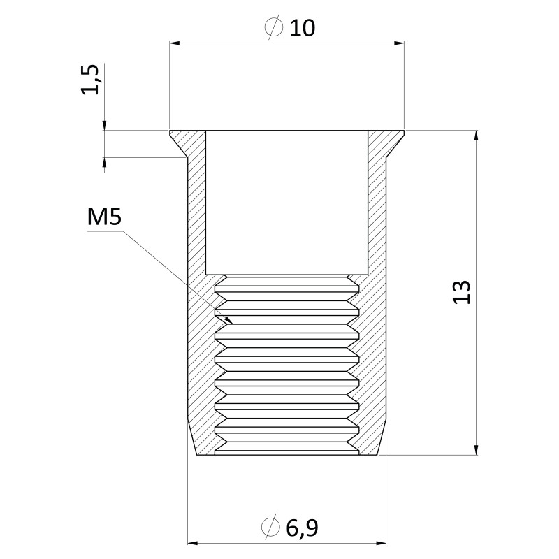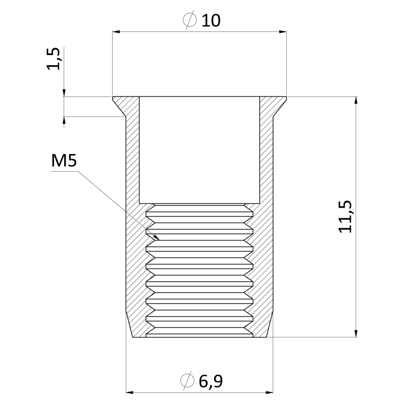 nitovacia matica M5 so zápustnou hlavou, ryhovaný driek, oceľ-biely pozink