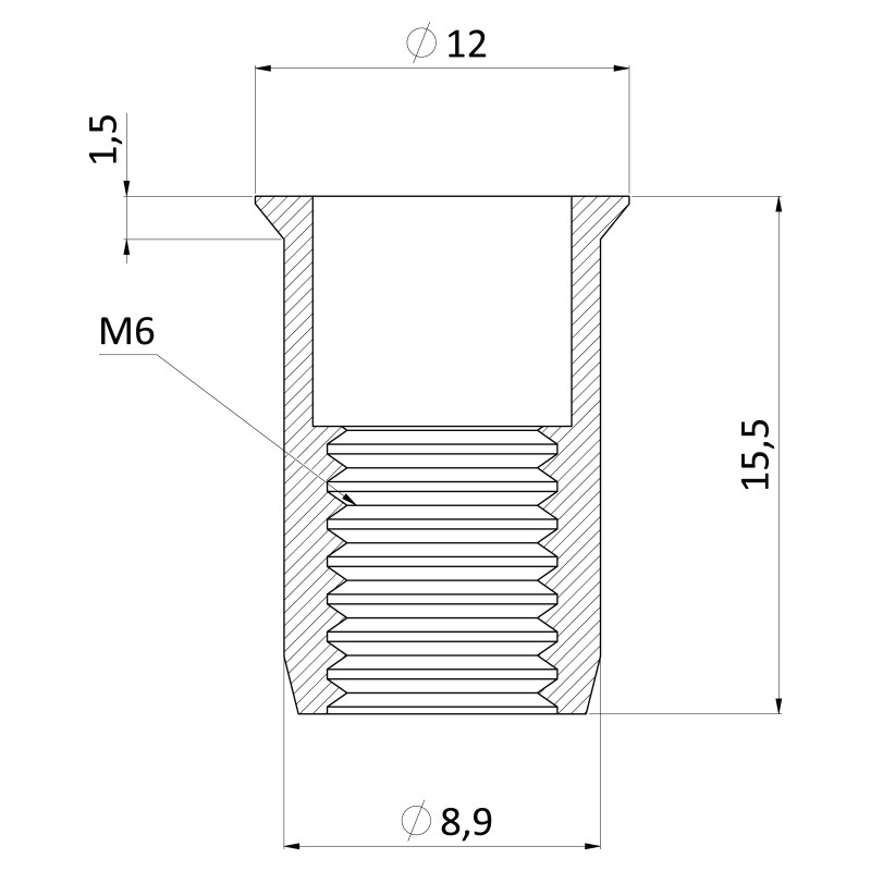 nitovacia matica M6 so zápustnou hlavou, ryhovaný driek, oceľ-biely pozink