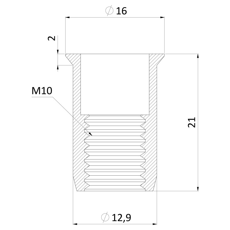Nitovacia matica M10 so zápustnou hlavou, ryhovaný driek, oceľ-biely pozink