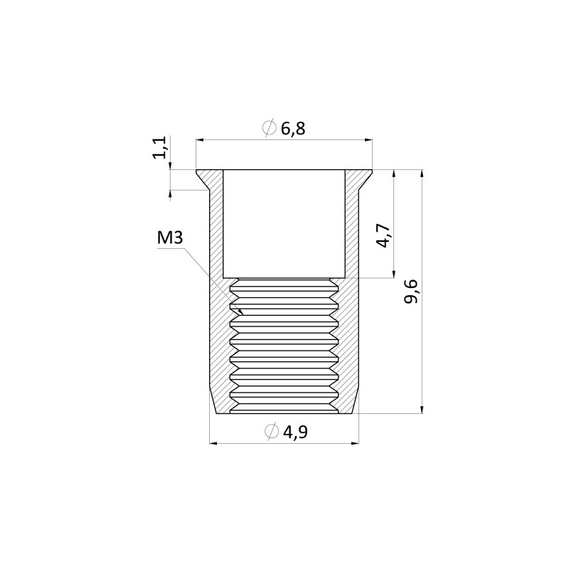 Nitovacia matica M3 so zápustnou hlavou, ryhovaný driek, oceľ-biely pozink
