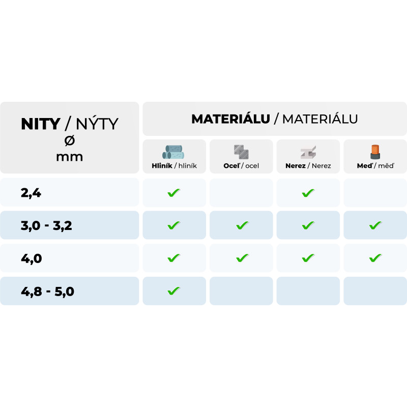 Ergonomické rukoväte, ktoré uľahčujú nitovanie.