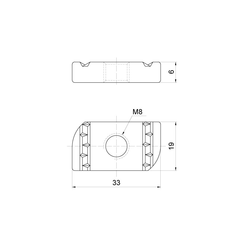 Tento jazdec slúži na uchytenie širokej škály príslušenstva k nosníkom a konzolám. Používa sa predovšetkým v kombinácii s podložkami a metrickými skrutkami.