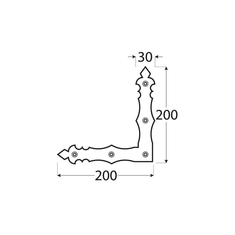 Dekoratívny/ozdobný rohovník 200x200x30mm, 3.0mm, čierne práškovanie, počet 5.0mm dier-6ks