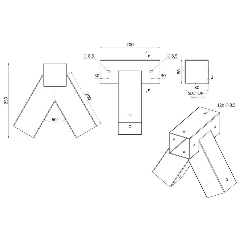 - Vhodné pre profil 80x80mm, ktorý stačí jemne zbrúsiť na koncoch, vďaka čomu doň budú spojky pasovať