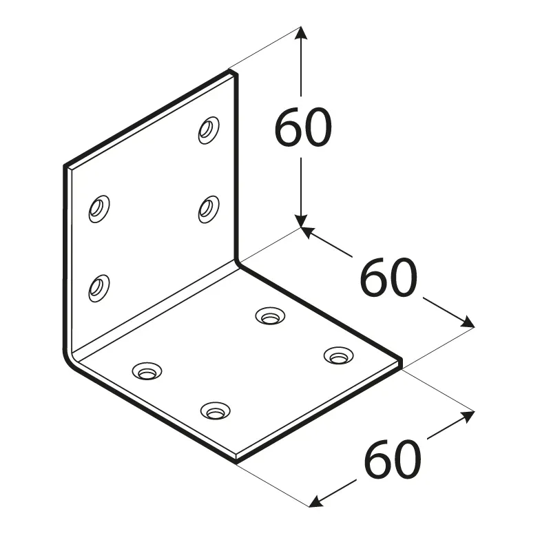 Uholník široký 60x60x60mm, 2,0mm, pozink, otvory priemer 4,5mm - v počte 8ks