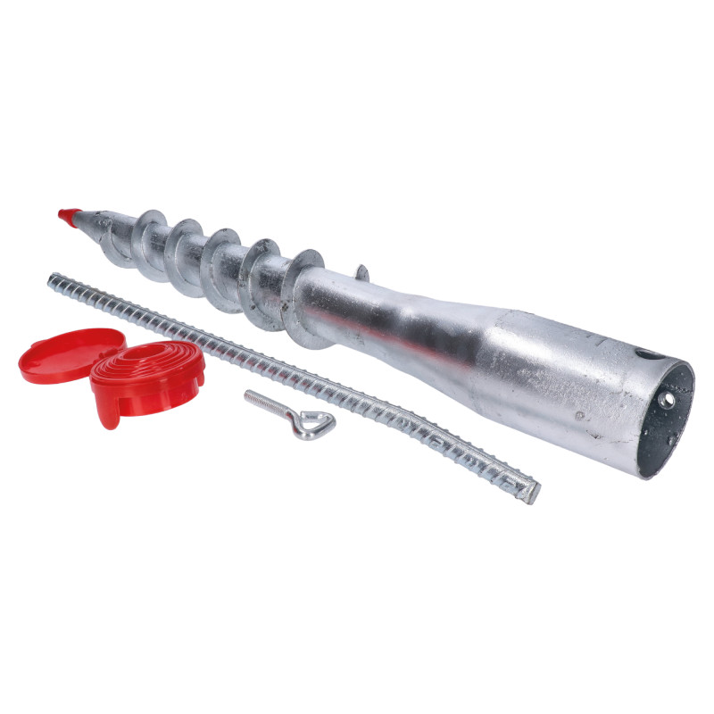 Sada: zemná skrutka + plastové redukcie + uťahovacia tyč + skrutka na dotiahnutie