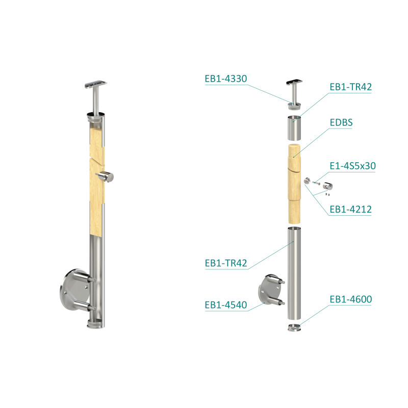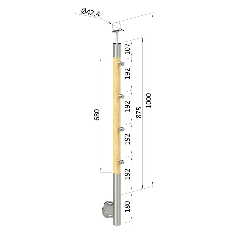 Drevený stĺp, bočné kotvenie, 4-radový, priechodný, vonkajší