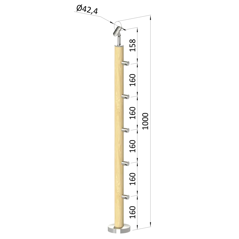 Drevený stĺp, vrchné kotvenie, 5-radový, priechodný