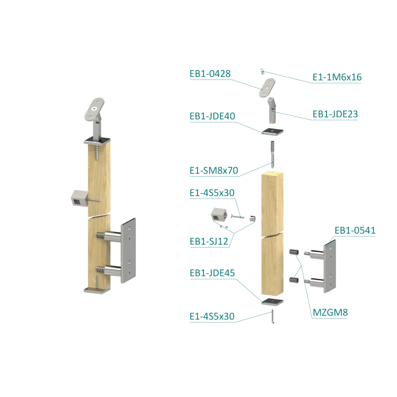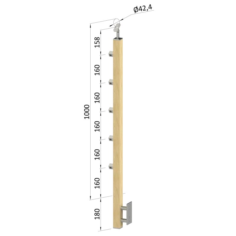 Drevený stĺp, bočné kotvenie, 5-radový, priechodný, vonkajší