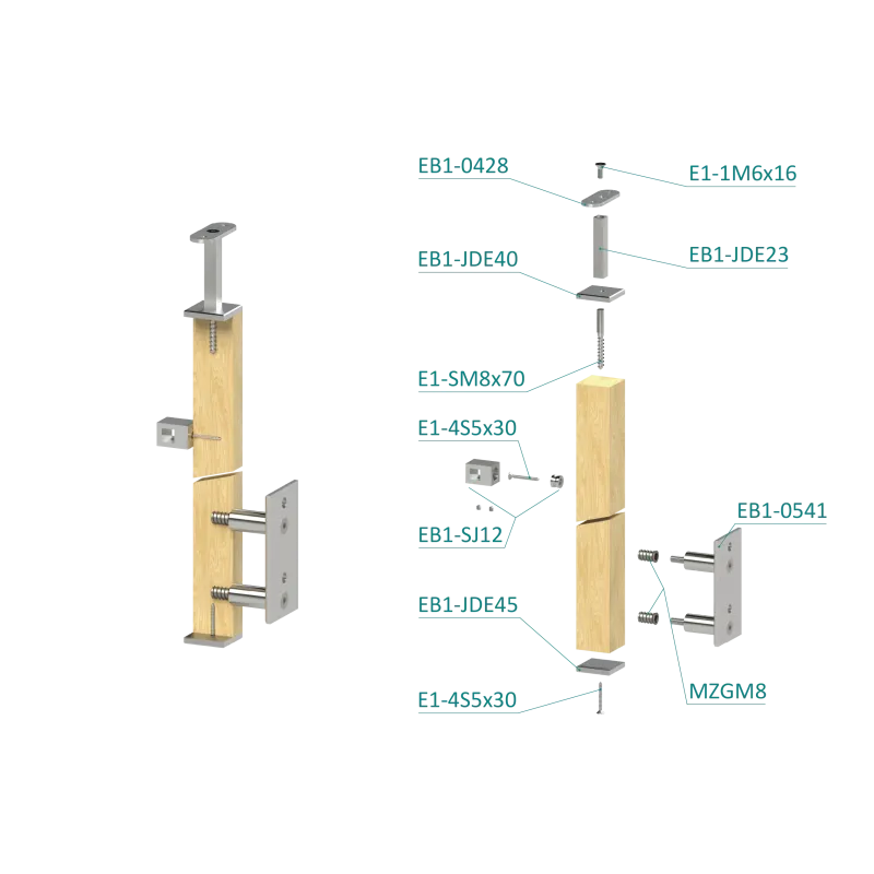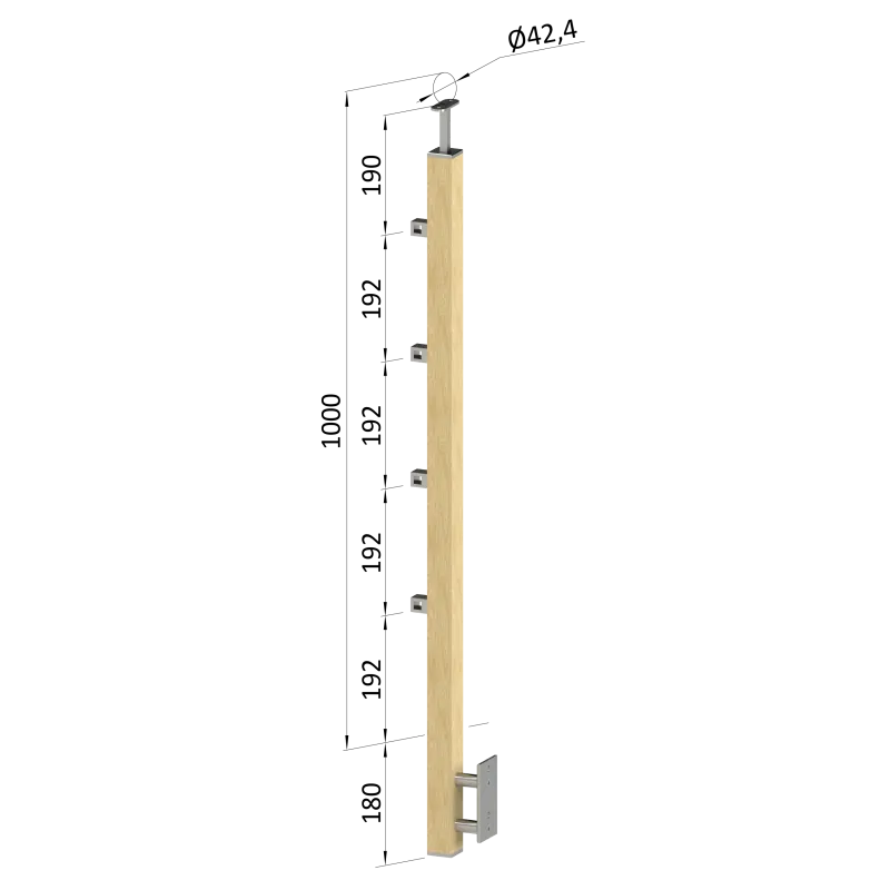 Drevený stĺp, bočné kotvenie, 4-radový, priechodný, vonkajší
