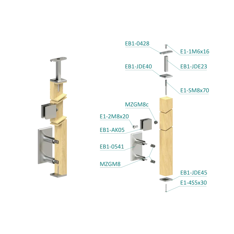 Drevený stĺp, bočné kotvenie, výplň: sklo, koncový, ľavý