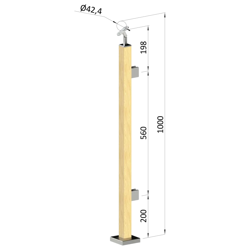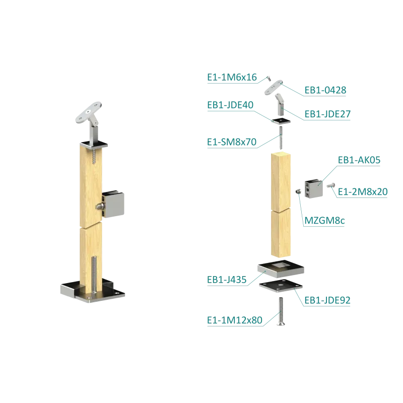 Drevený stĺp, vrchné kotvenie, výplň: sklo, pravý