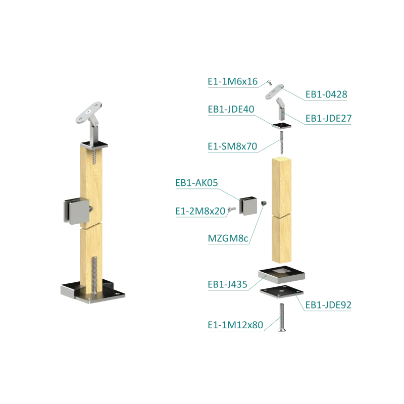 Drevený stĺp, vrchné kotvenie, výplň: sklo, ľavý
