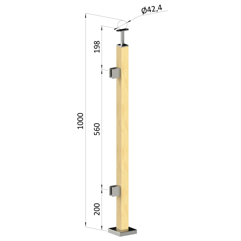Drevený stĺp, vrchné kotvenie, výplň: sklo, ľavý