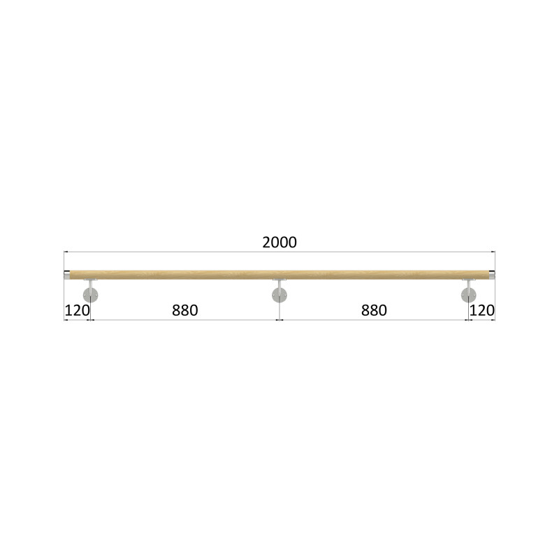 Madlo drevené (2000mm), materiál: buk, brúsený povrch bez náteru, set: 3 ks úchyt, madlo s nerezovým ukončením
