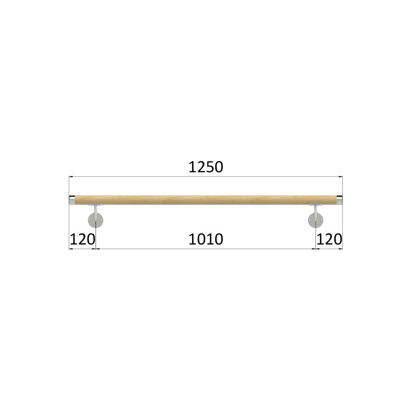 Madlo drevené (1250mm), materiál: buk, brúsený povrch bez náteru, set: 2 ks úchyt, madlo s nerezovým ukončením