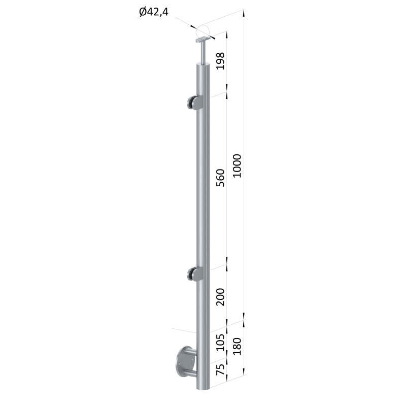Nerezový stĺp, bočné kotvenie, výplň: sklo, ľavý