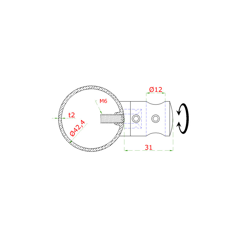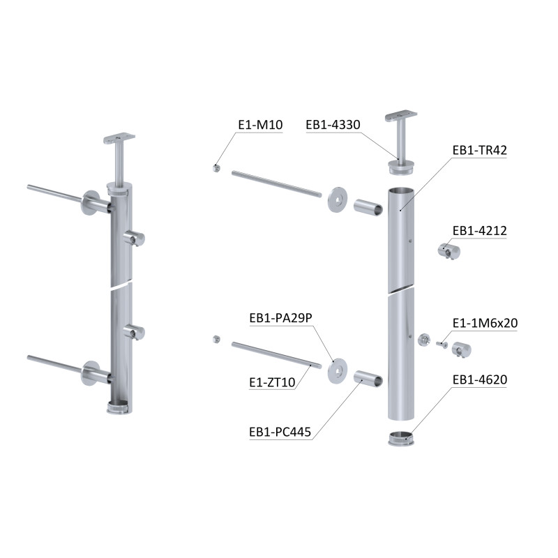 Nerezový stĺp, fr. balkón, bočné kotvenie, 5-rad priechodný