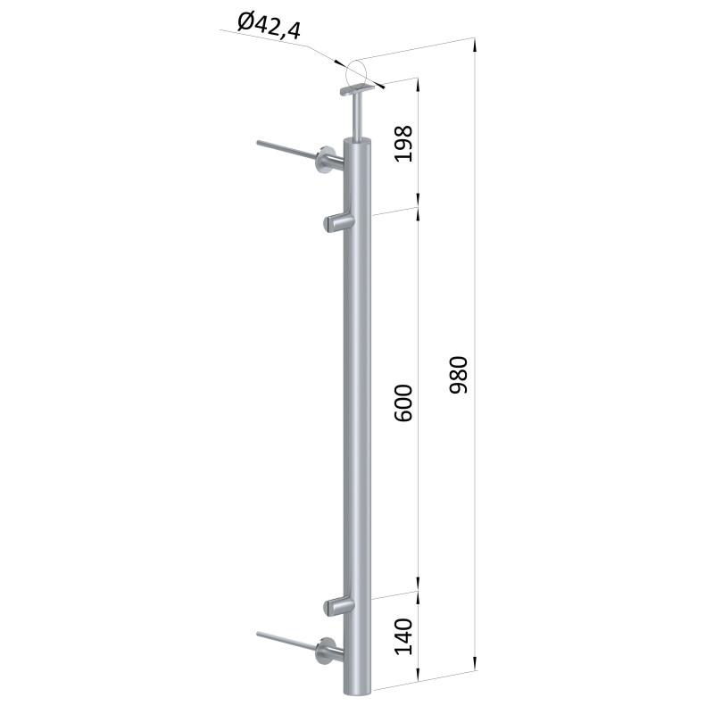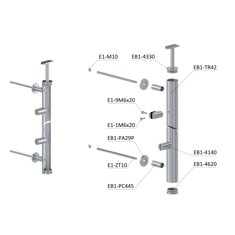 Nerezový stĺp, bočné kotvenie, výplň: plech, ľavý
