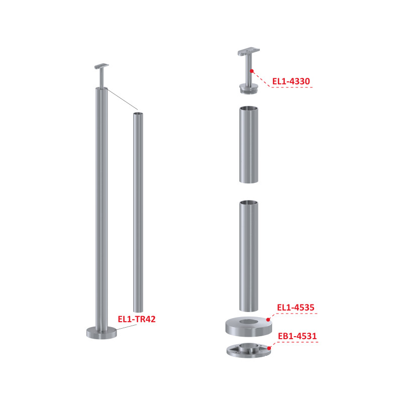 Nerezový stĺp, vrchné kotvenie, bez výplne