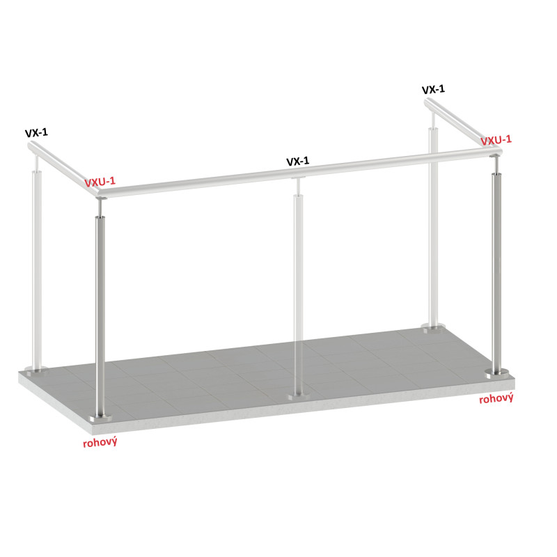 Nerezový stĺp, vrchné kotvenie, bez výplne, rohový: 90°