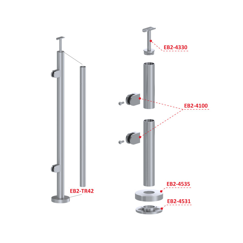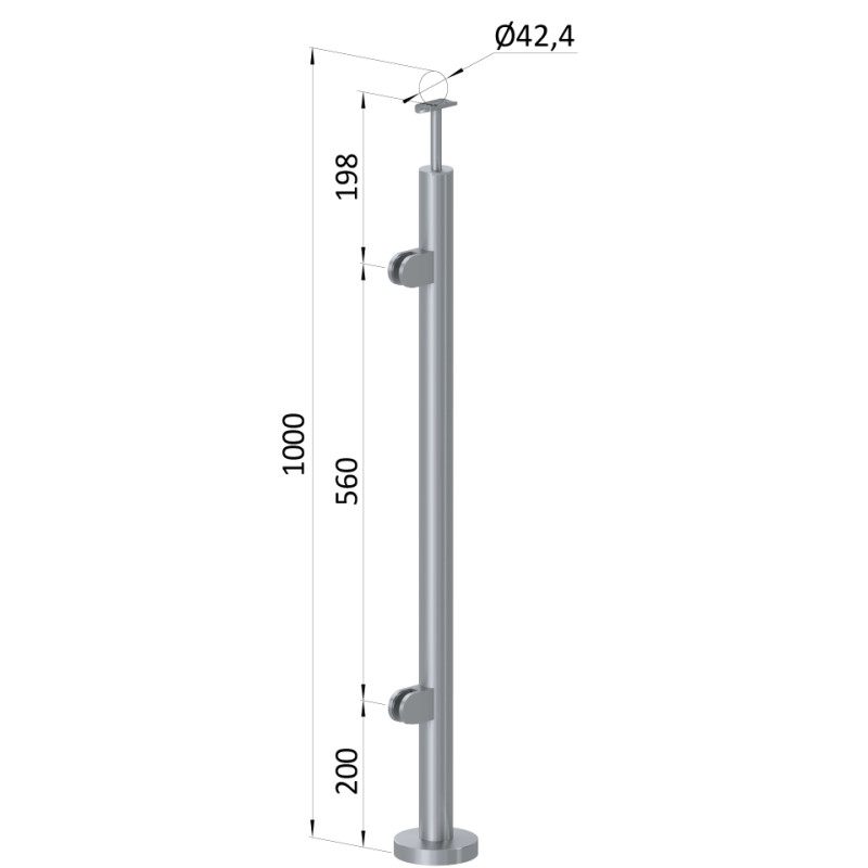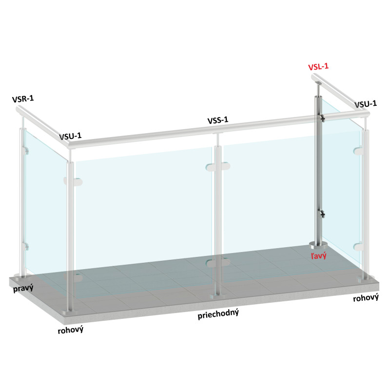 Nerezový stĺp, vrchné kotvenie, výplň: sklo, ľavý