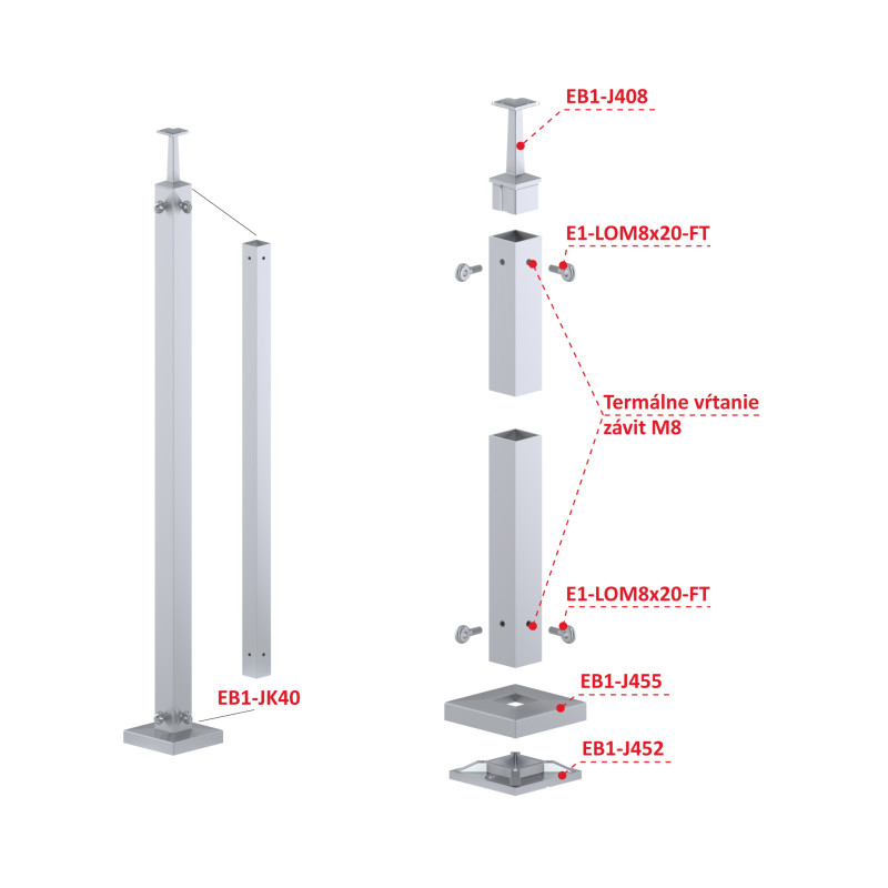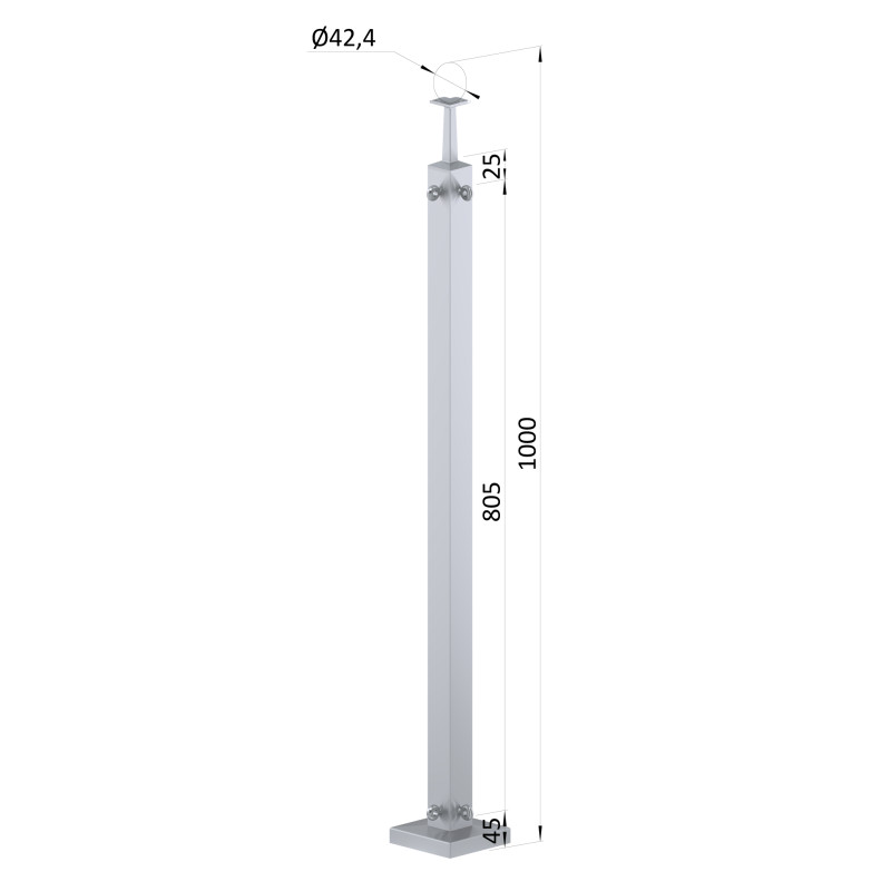 Nerezový stĺp, vrchné kotvenie, pre sieť, rohový 90°