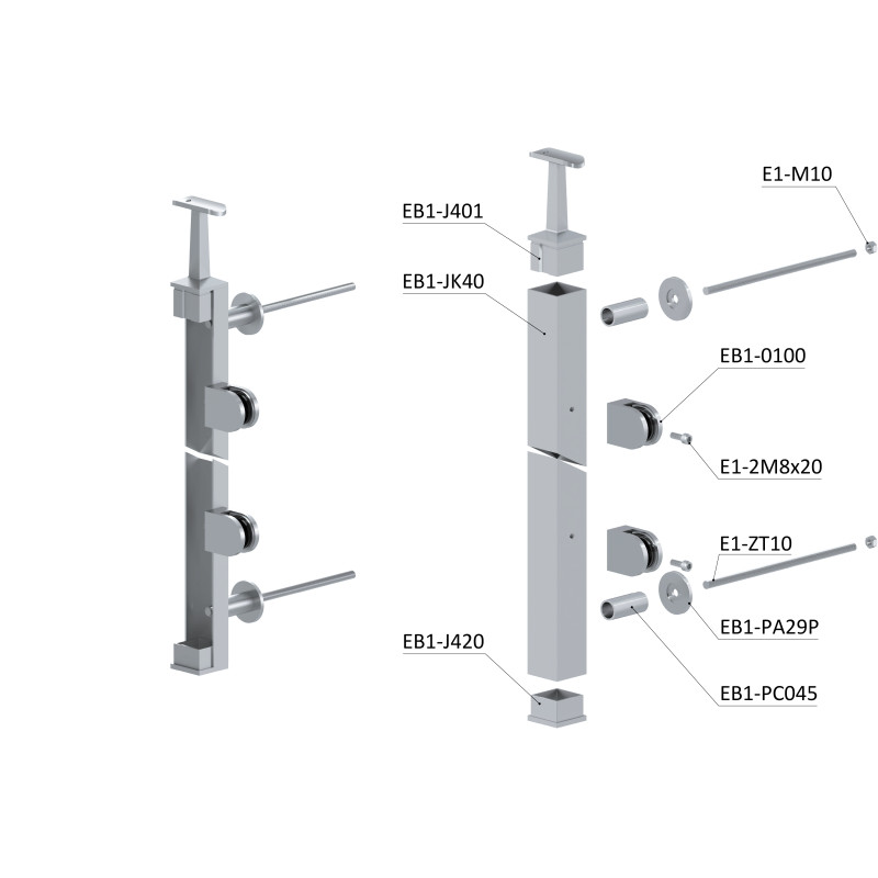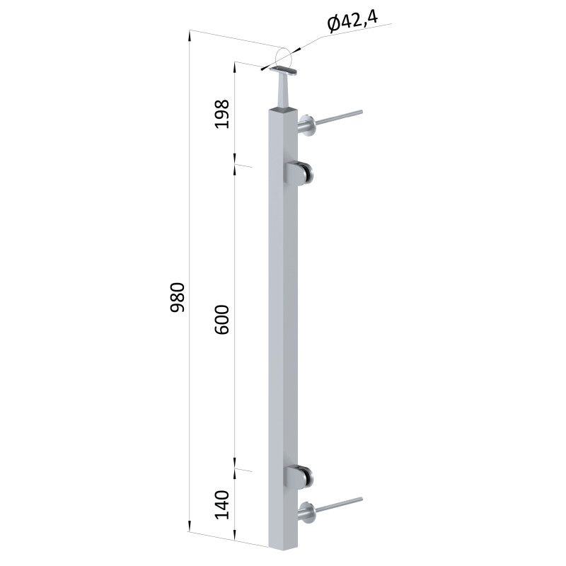 Nerezový stĺp fr. balkón, bočné kotvenie, výplň: sklo, pravý