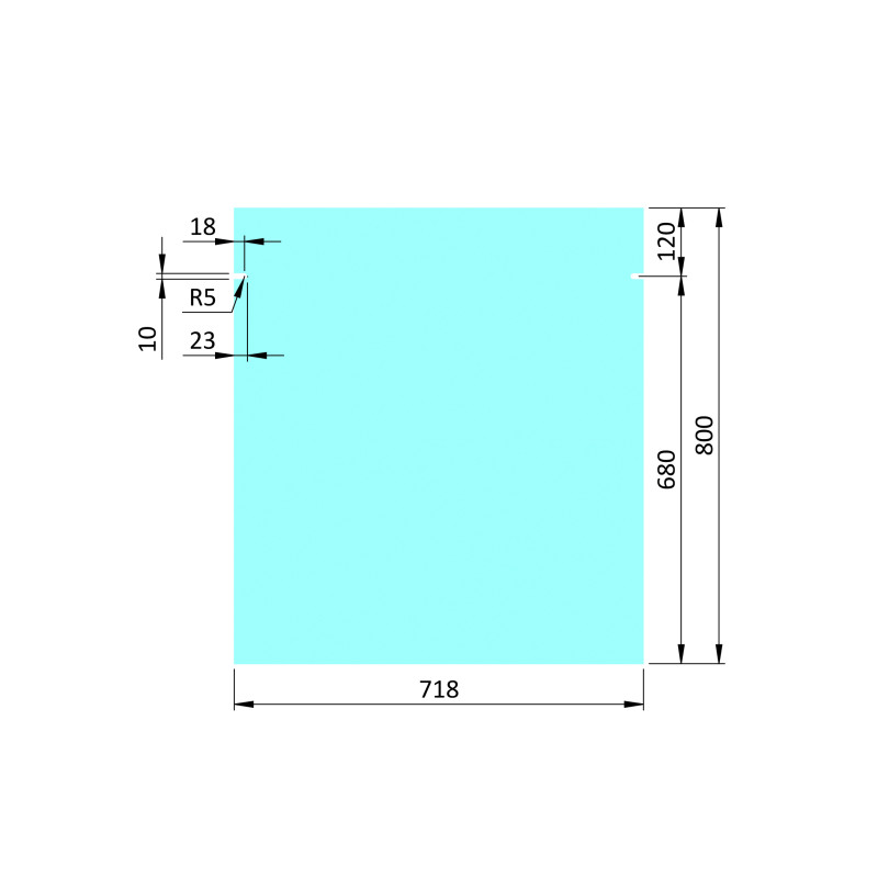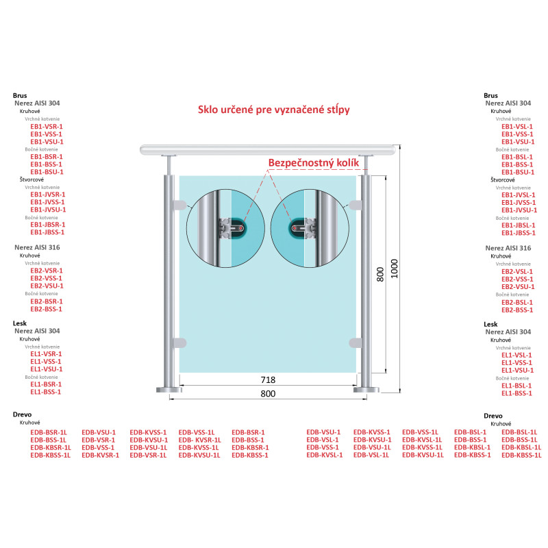Transparentné ESG / VSG sklo pre osovú vzdialenosť medzi stĺpikmi 800mm, rozmer 718x800mm, hrúbka: 8.76mm s fóliou a výrezmi pre bezpečnostný kolík