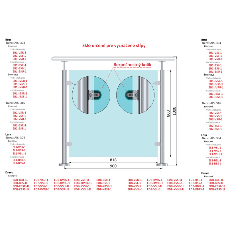 Transparentné ESG/VSG sklo medzi stĺpky 900 mm