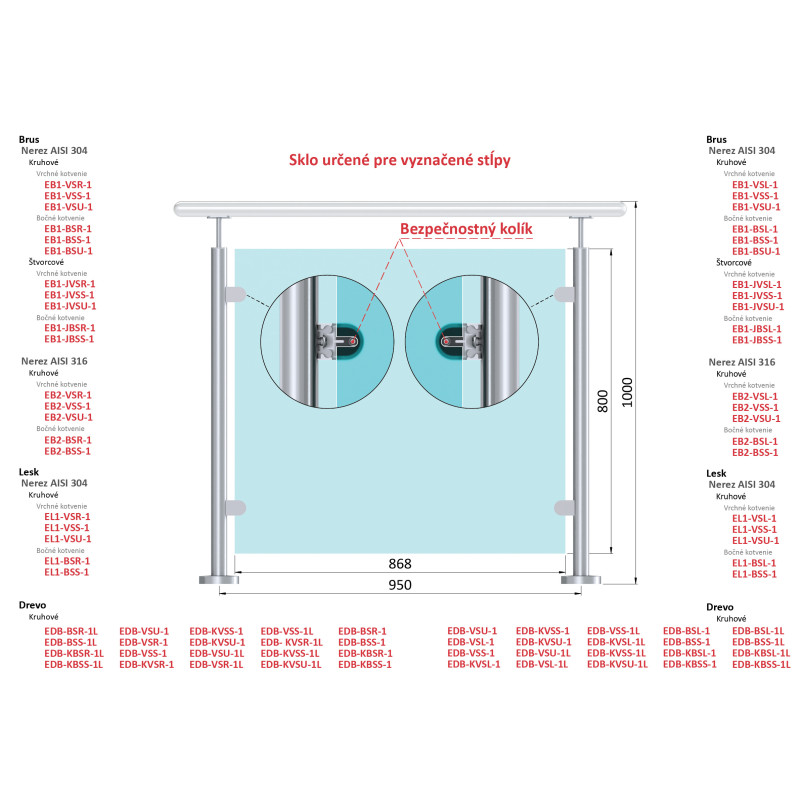 Transparentné ESG/VSG sklo medzi stĺpky 950 mm