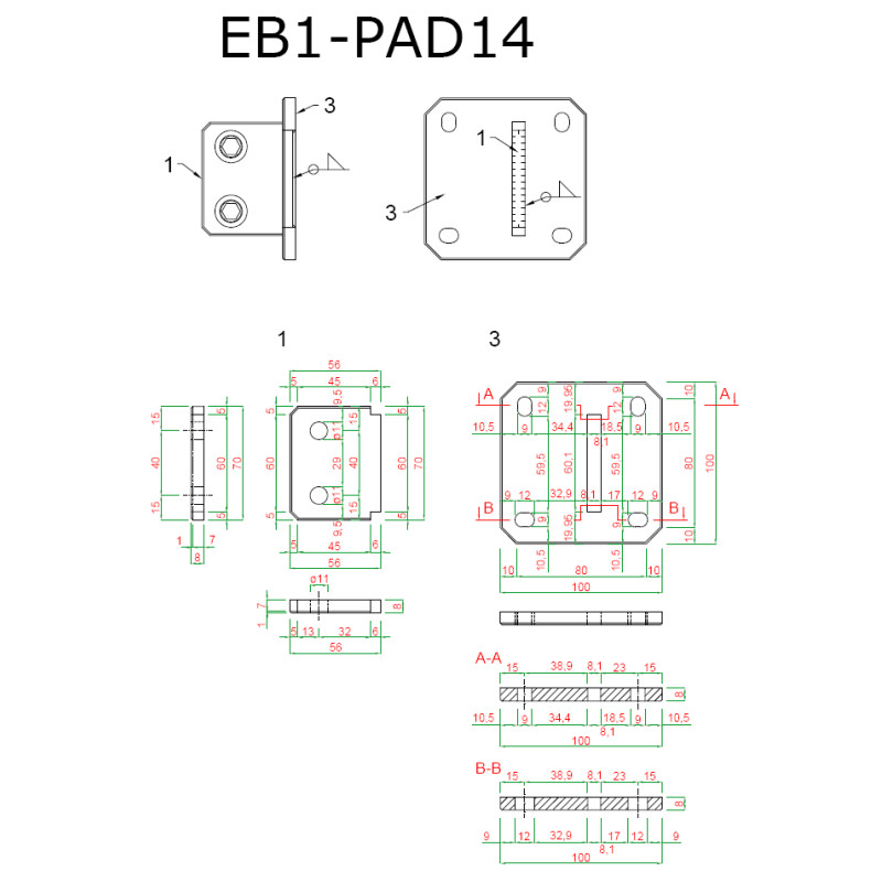 Príruba k vypalovaným stĺpikom, vŕtanie 4 diery, AISI 304